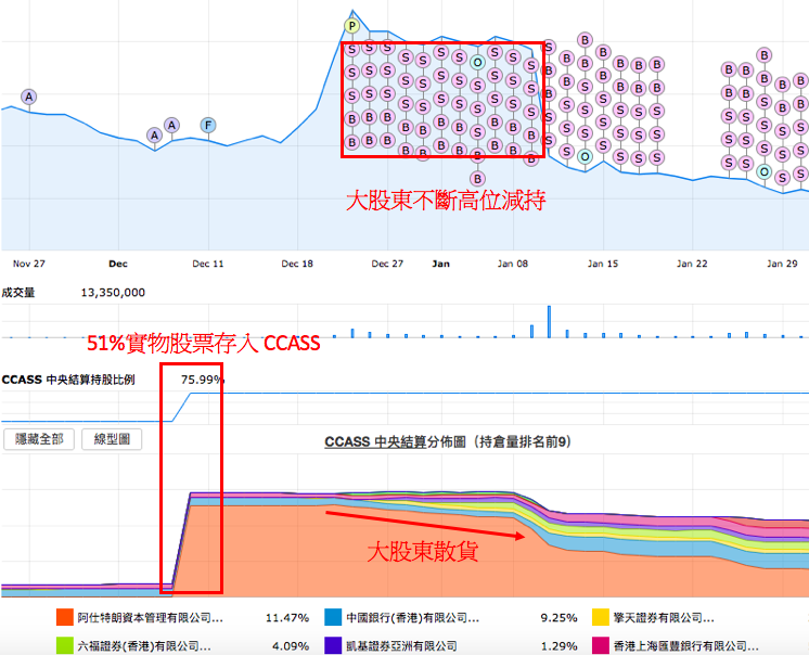 大股東把實物股票存入CCASS後高位散貨