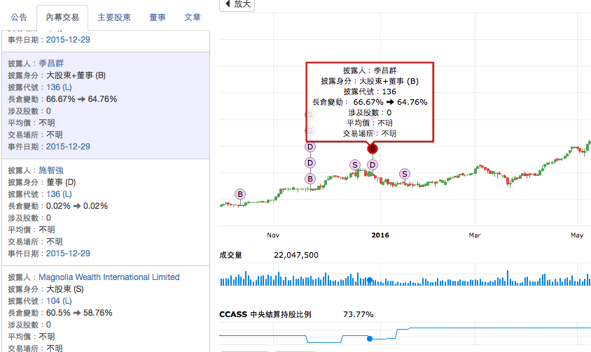 內幕人士(如主要股東,董事等)增持或減持對股票的未來走勢有着很大的啟示。內幕人士增持有助於穩定及推升股價,減持則有拖低股價的可能。