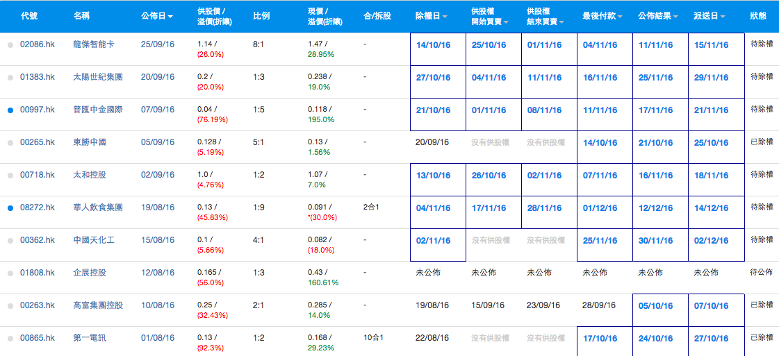 DT系統設置最完整的財技事件數據庫,可供用戶詳細查閱每單財技事件的重點及相關重要日子 (如供股除權日/最後付款日,全購最後接納日等等)。覆蓋財技種類包括供股,配股,全面收購,IPO,送紅股,合/拆股,可換股債券等。